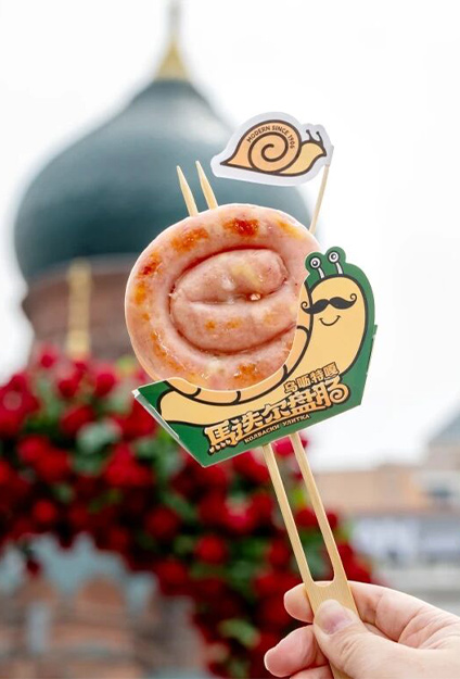 哈尔滨索菲亚教堂是哈尔滨的地标之一,游客在这里体验异域风情的同时,品尝“乌呖特嘎”盘肠,将美食与文化完美结合。