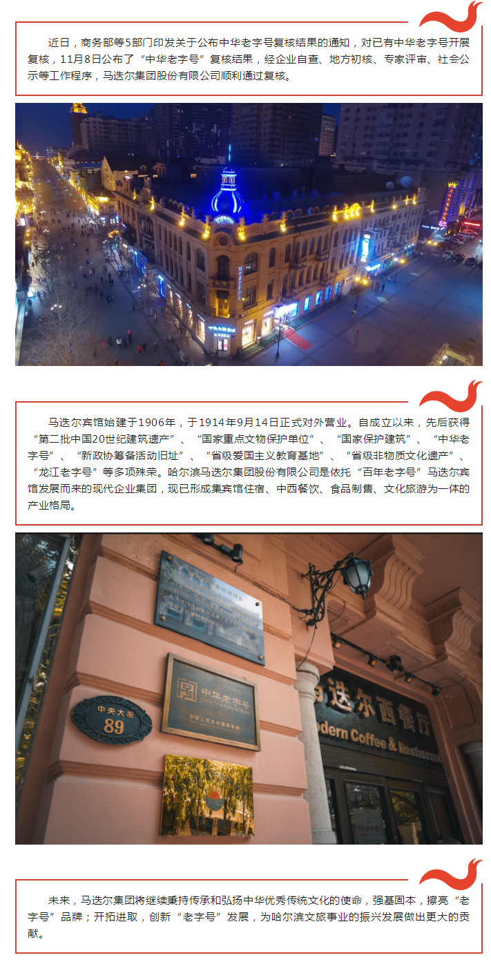 喜报 | 马迭尔集团顺利通过商务部等5部门关于“中华老字号”的复核