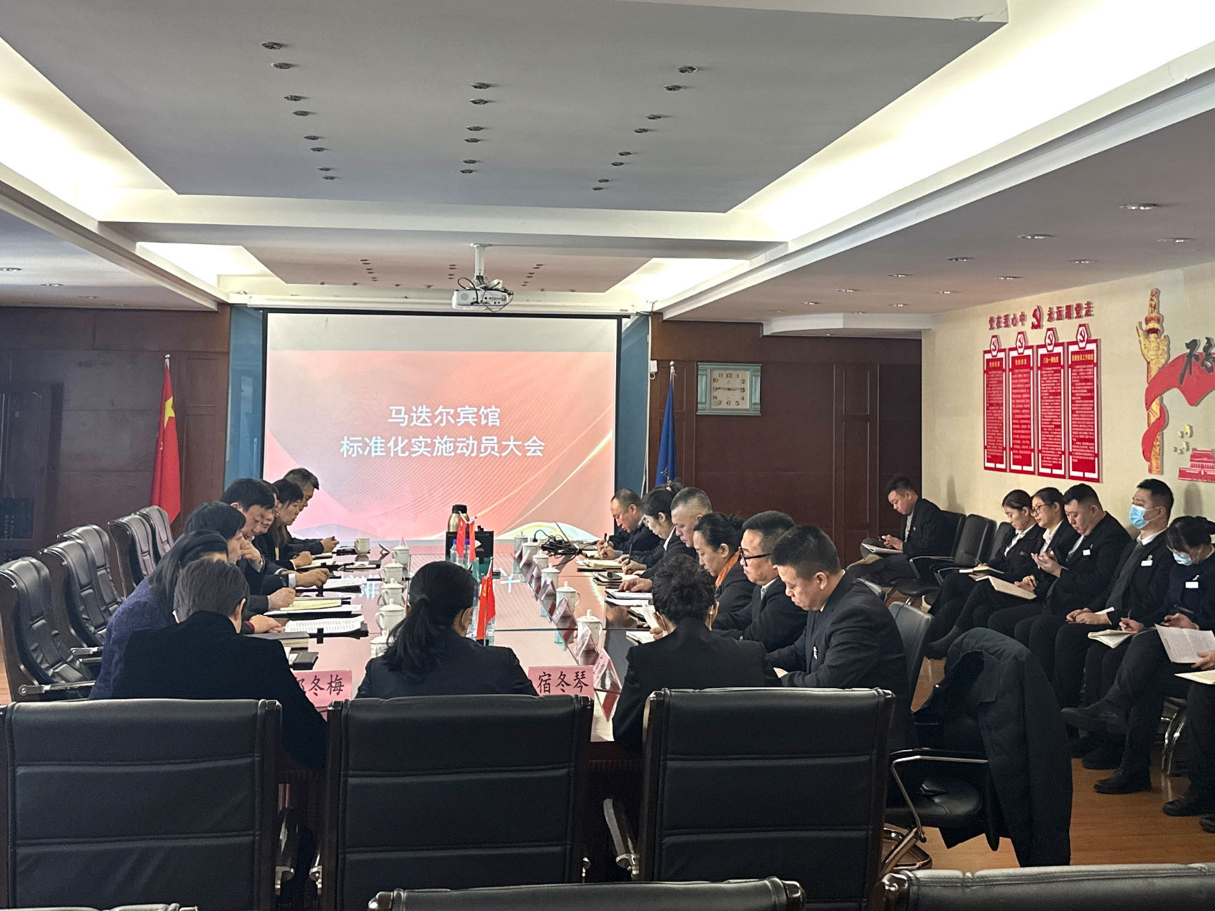 2024年1月16日“马迭尔宾馆标准化实施动员大会”在马迭尔大厦九楼会议室召开,党委专职副书记高晓华作工作部署,集团副总经理、宾馆总经理刘玲作具体工作安排,宾馆各部门负责人发言表态,企管部作质检工作汇报及表态发言。