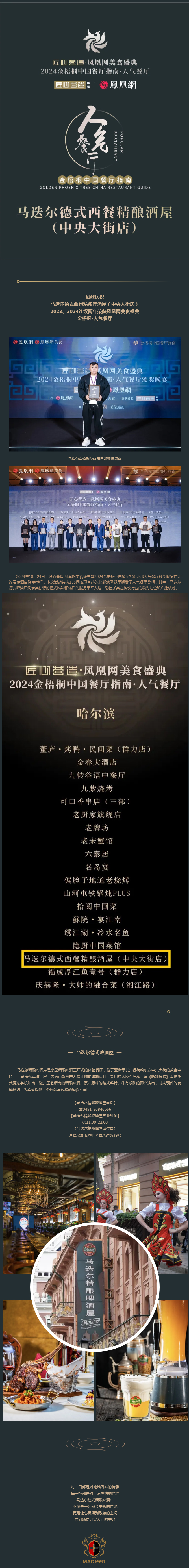 喜讯|马迭尔德式精酿啤酒屋连续两年荣获凤凰网美食盛典——金梧桐·人气餐厅