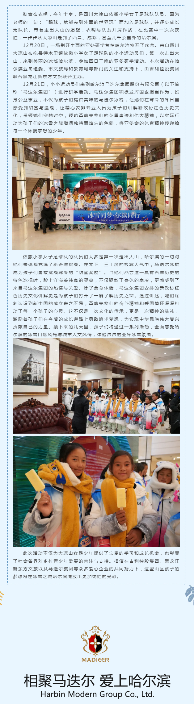 马迭尔集团助力大凉山女足亚冬行,共谱冰雪梦想华章