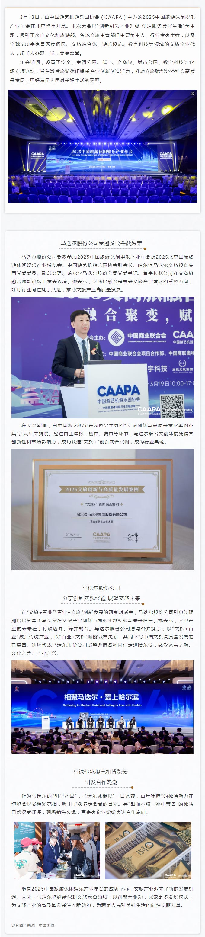 2025中国旅游休闲娱乐产业年会在京开幕-马迭尔股份公司精彩亮相并获殊荣