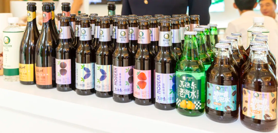 马迭尔股份公司的展位设计独具匠心,带来了丰富多元的产品惊艳亮相,引得参会者纷纷驻足。饮品方面,有IPA、世涛、白啤、皮尔森四款经典精酿啤酒,还有蔓越莓、草莓、黑加仑、蓝靛果等5款果味西打,以及马迭尔老汽水、咖啡气泡水2款特色饮品。每一款产品都是从传统到创新的不断尝试。