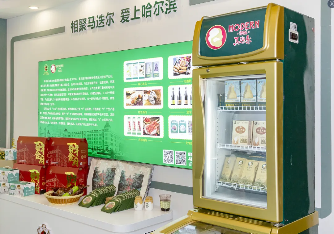 冰品方面,马迭尔股份公司带来了“一口冰爽 百年味道”的经典原味冰棍以及各类创新口味冰品与文创产品,如比利时巧克力、海盐椰椰、香草巧巧、牛油果酪酪、索菲亚巧克力等。